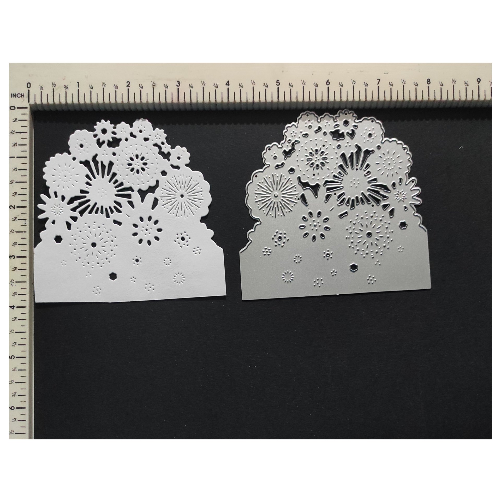 1. Material: Metal 2. Precision Cutting: Achieve detailed and precise cuts with this metal cutting die. 3. Versatile Use: Perfect for DIY projects, scrapbooking, and card-making activities. 4. Durable Material: Made from high-quality metal, ensuring durability and longevity. 5. Compatibility: Compatible with most die-cutting machines for added convenience.