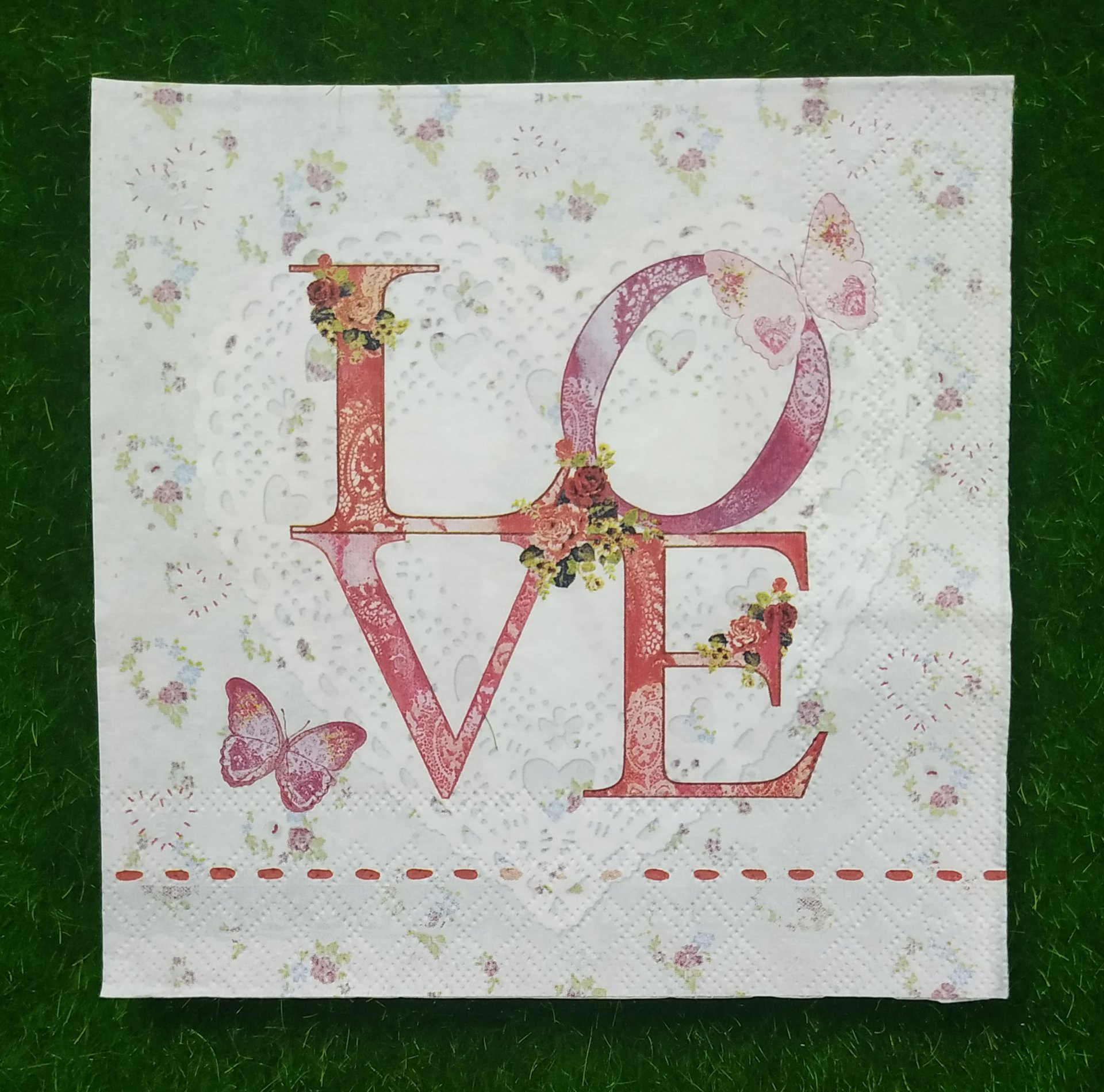 FOLDED SIZE 16.5 *16.5 CM ,UNFOLDED SIZE 33*33 CM. NAPKINS ARE 2 PLY TISSUES FROM RECYCLED PULP,PRINTED WITH NONTOXIC COLOURS, BIODEGRADABLE AND COMPOSTABLE. DECOUPAGE IS ARTISTIC SLIEGHT OF HAND. WHAT APPEARS TO BE PAINTED DESIGN ACTUALLY PAPER, GLUED IN PLACE. YOU CAN USE IT ON SURFACE LIKE GLASS, MDF, WOODEN ETC.