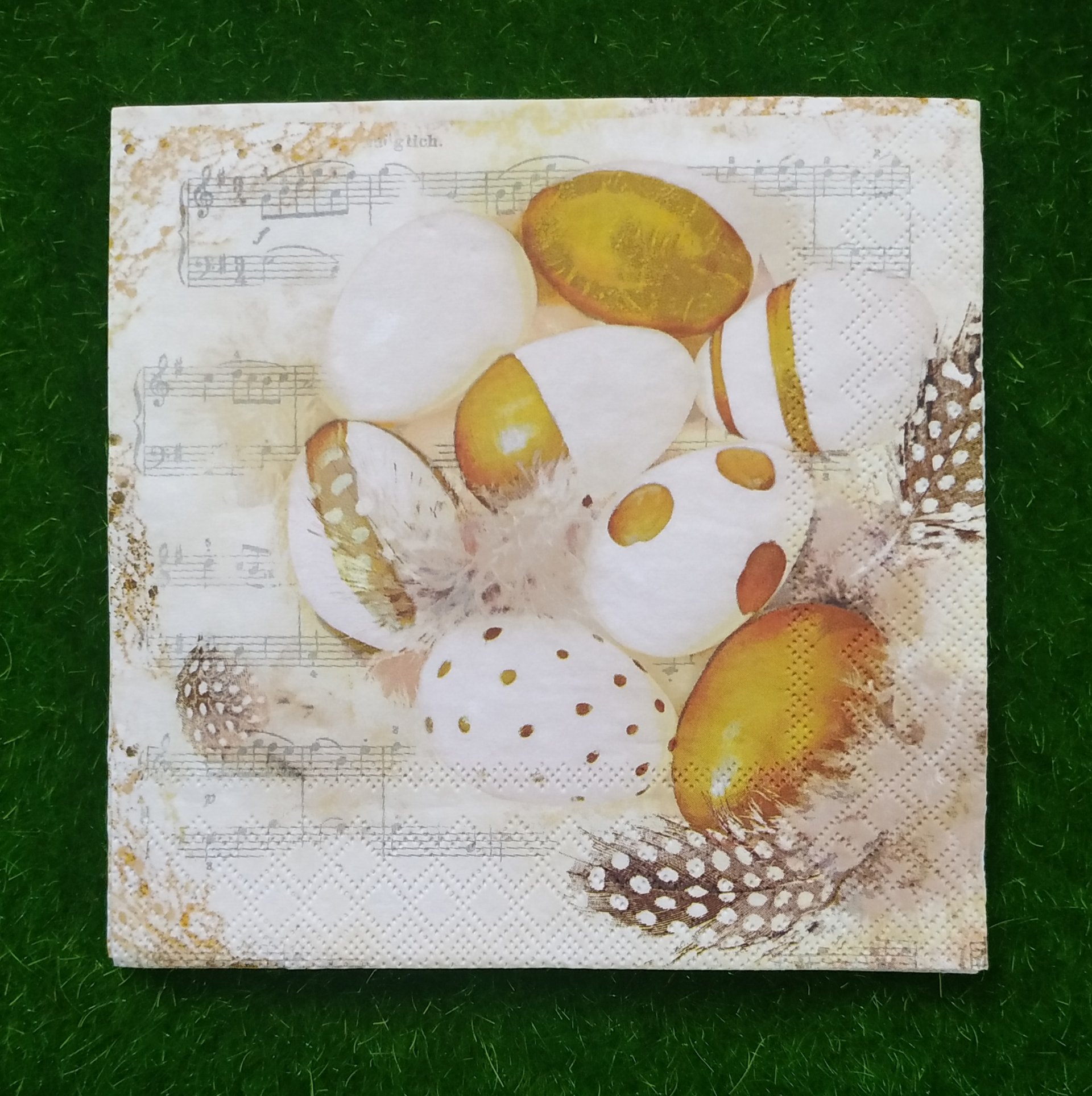 FOLDED SIZE 16.5 *16.5 CM ,UNFOLDED SIZE 33*33 CM. NAPKINS ARE 2 PLY TISSUES FROM RECYCLED PULP,PRINTED WITH NONTOXIC COLOURS, BIODEGRADABLE AND COMPOSTABLE. DECOUPAGE IS ARTISTIC SLIEGHT OF HAND. WHAT APPEARS TO BE PAINTED DESIGN ACTUALLY PAPER, GLUED IN PLACE. YOU CAN USE IT ON SURFACE LIKE GLASS, MDF, WOODEN ETC.
