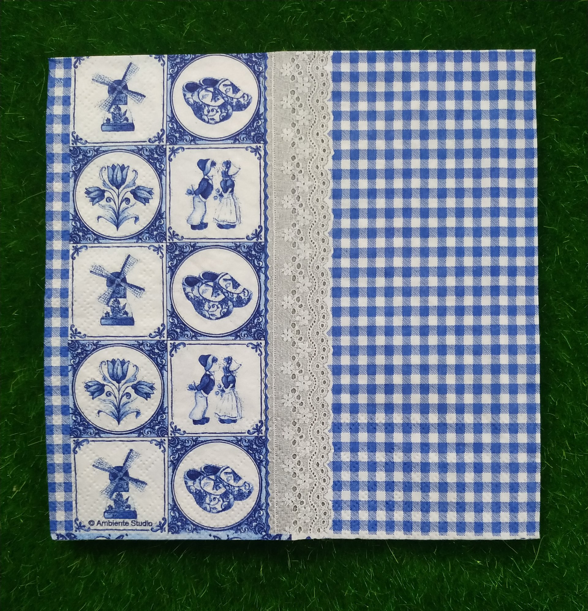 FOLDED SIZE 16.5 *16.5 CM ,UNFOLDED SIZE 33*33 CM. NAPKINS ARE 2 PLY TISSUES FROM RECYCLED PULP,PRINTED WITH NONTOXIC COLOURS, BIODEGRADABLE AND COMPOSTABLE. DECOUPAGE IS ARTISTIC SLIEGHT OF HAND. WHAT APPEARS TO BE PAINTED DESIGN ACTUALLY PAPER, GLUED IN PLACE. YOU CAN USE IT ON SURFACE LIKE GLASS, MDF, WOODEN ETC.