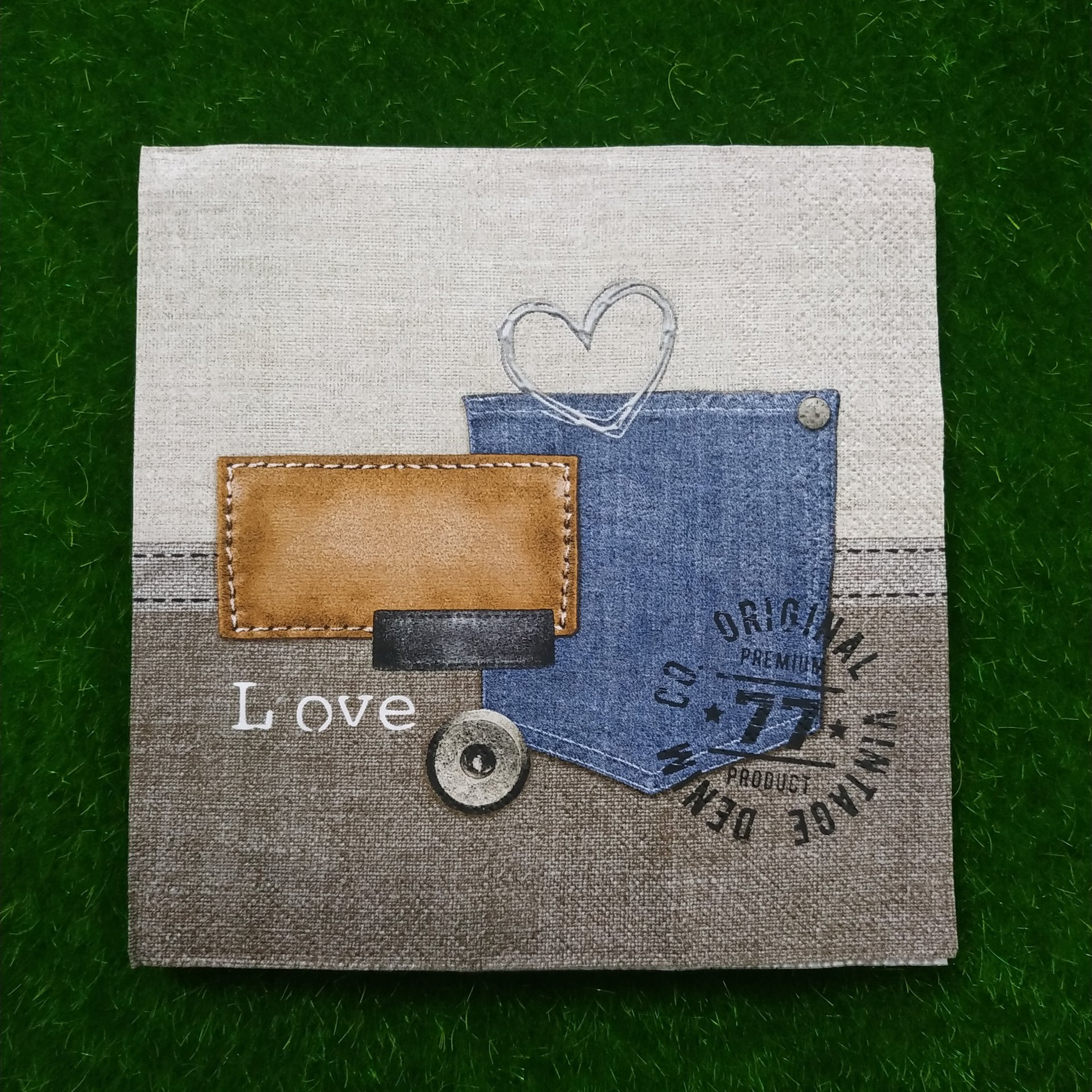FOLDED SIZE 16.5 *16.5 CM ,UNFOLDED SIZE 33*33 CM. NAPKINS ARE 2 PLY TISSUES FROM RECYCLED PULP,PRINTED WITH NONTOXIC COLOURS, BIODEGRADABLE AND COMPOSTABLE. DECOUPAGE IS ARTISTIC SLIEGHT OF HAND. WHAT APPEARS TO BE PAINTED DESIGN ACTUALLY PAPER, GLUED IN PLACE. YOU CAN USE IT ON SURFACE LIKE GLASS, MDF, WOODEN ETC.