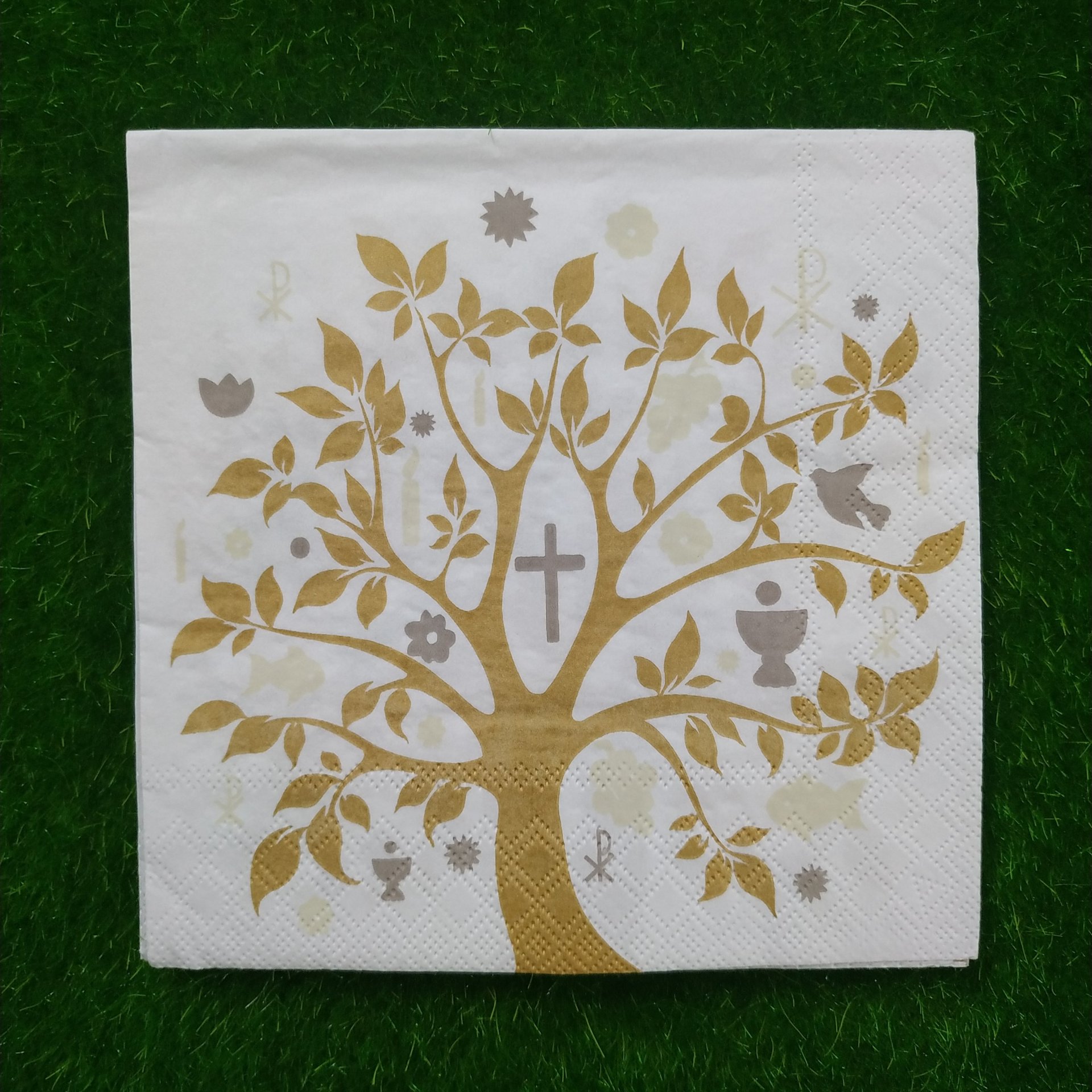 FOLDED SIZE 16.5 *16.5 CM ,UNFOLDED SIZE 33*33 CM. NAPKINS ARE 2 PLY TISSUES FROM RECYCLED PULP,PRINTED WITH NONTOXIC COLOURS, BIODEGRADABLE AND COMPOSTABLE. DECOUPAGE IS ARTISTIC SLIEGHT OF HAND. WHAT APPEARS TO BE PAINTED DESIGN ACTUALLY PAPER, GLUED IN PLACE. YOU CAN USE IT ON SURFACE LIKE GLASS, MDF, WOODEN ETC.