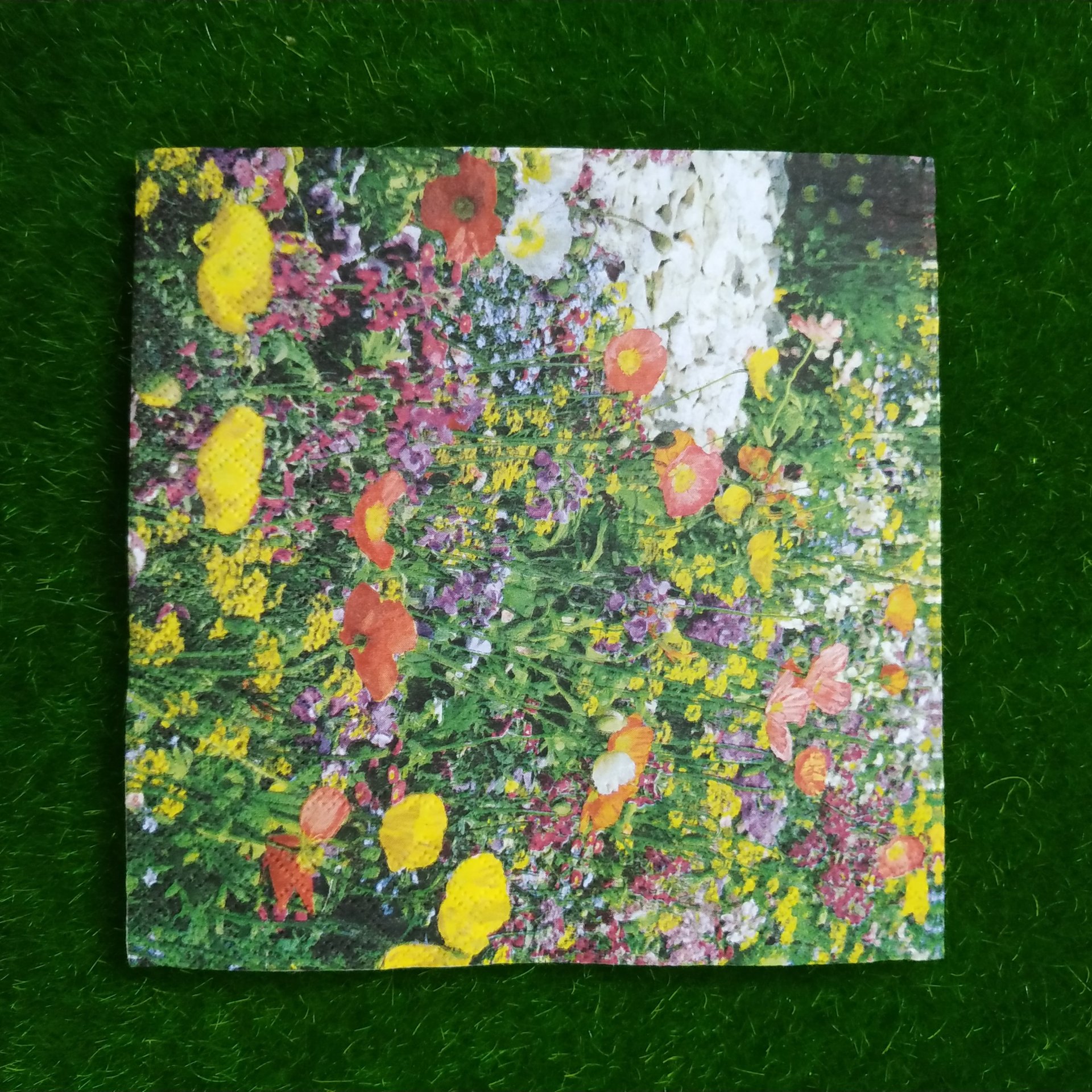 FOLDED SIZE 16.5 *16.5 CM ,UNFOLDED SIZE 33*33 CM. NAPKINS ARE 2 PLY TISSUES FROM RECYCLED PULP,PRINTED WITH NONTOXIC COLOURS, BIODEGRADABLE AND COMPOSTABLE. DECOUPAGE IS ARTISTIC SLIEGHT OF HAND. WHAT APPEARS TO BE PAINTED DESIGN ACTUALLY PAPER, GLUED IN PLACE. YOU CAN USE IT ON SURFACE LIKE GLASS, MDF, WOODEN ETC.