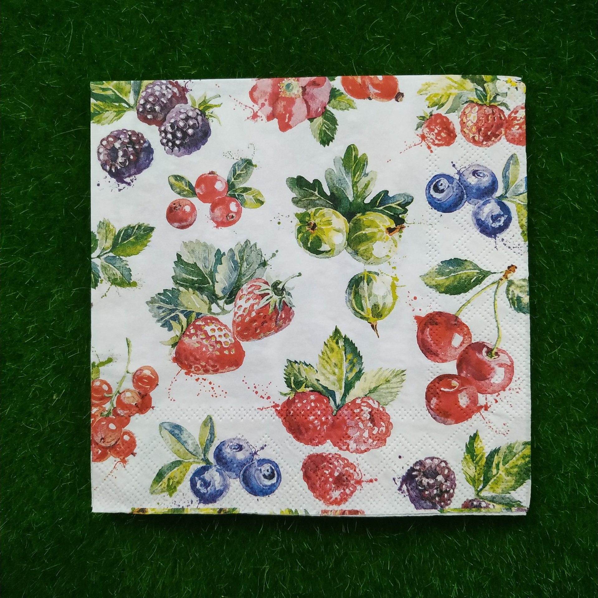 FOLDED SIZE 16.5 *16.5 CM ,UNFOLDED SIZE 33*33 CM. NAPKINS ARE 2 PLY TISSUES FROM RECYCLED PULP,PRINTED WITH NONTOXIC COLOURS, BIODEGRADABLE AND COMPOSTABLE. DECOUPAGE IS ARTISTIC SLIEGHT OF HAND. WHAT APPEARS TO BE PAINTED DESIGN ACTUALLY PAPER, GLUED IN PLACE. YOU CAN USE IT ON SURFACE LIKE GLASS, MDF, WOODEN ETC.