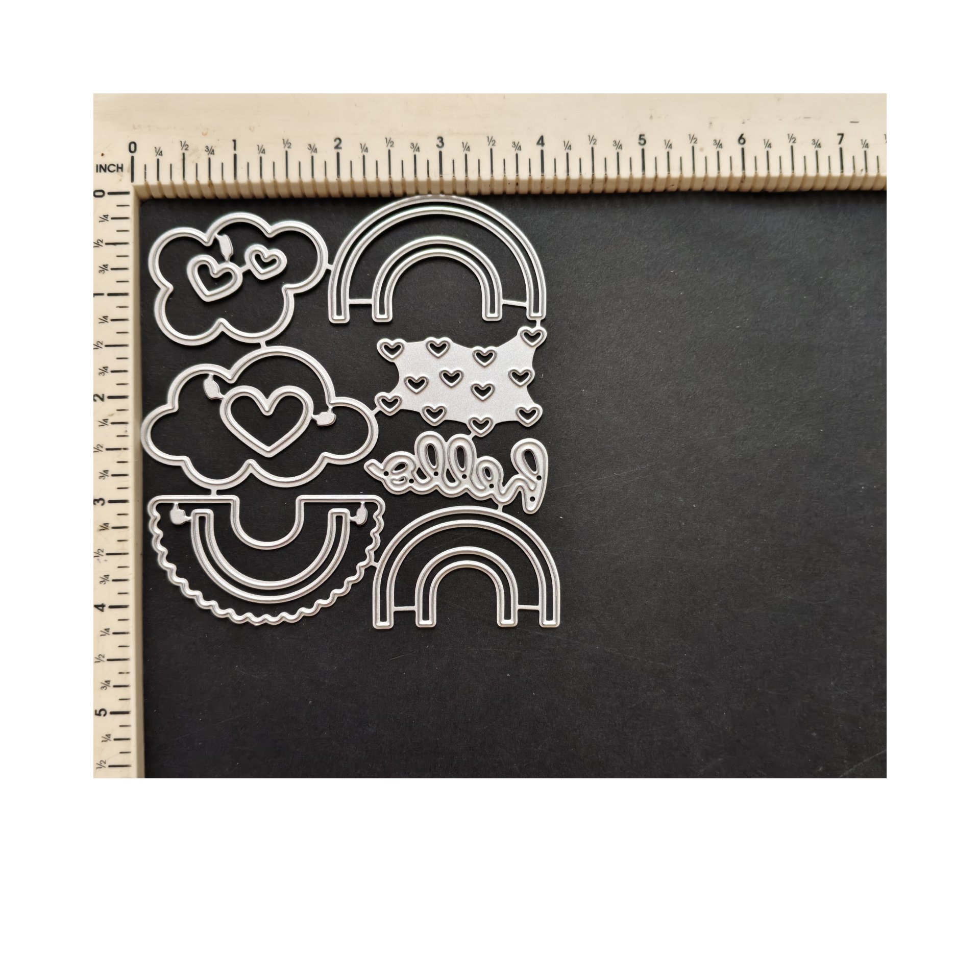 1. Material: Metal 2. Precision Cutting: Achieve detailed and precise cuts with this metal cutting die. 3. Versatile Use: Perfect for DIY projects, scrapbooking, and card-making activities. 4. Durable Material: Made from high-quality metal, ensuring durability and longevity. 5. Compatibility: Compatible with most die-cutting machines for added convenience.