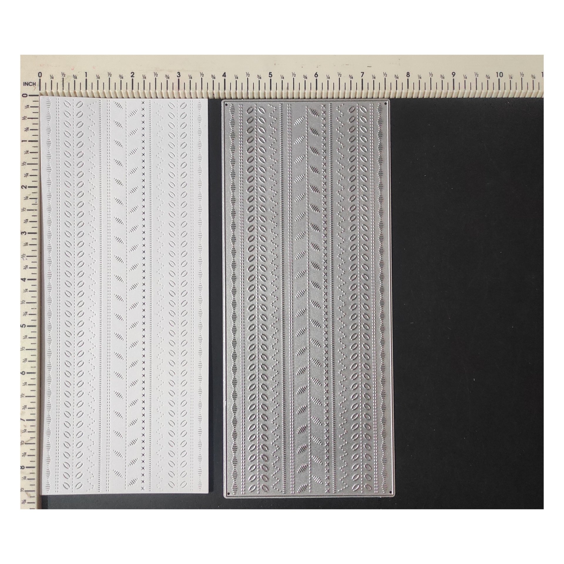 1. Material: Metal 2. Precision Cutting: Achieve detailed and precise cuts with this metal cutting die. 3. Versatile Use: Perfect for DIY projects, scrapbooking, and card-making activities. 4. Durable Material: Made from high-quality metal, ensuring durability and longevity. 5. Compatibility: Compatible with most die-cutting machines for added convenience