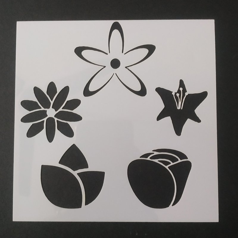 A stencil is a piece of paper, plastic, or metal which has a design cut out of it. You place the stencil on a surface and paint it so that paint goes through the holes and leaves a design on the surface. SIZE-5*5 INCHES WEIGHT-10 grm
