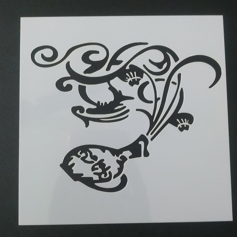 A stencil is a piece of paper, plastic, or metal which has a design cut out of it. You place the stencil on a surface and paint it so that paint goes through the holes and leaves a design on the surface. SIZE-5*5 INCHES WEIGHT-10 grm