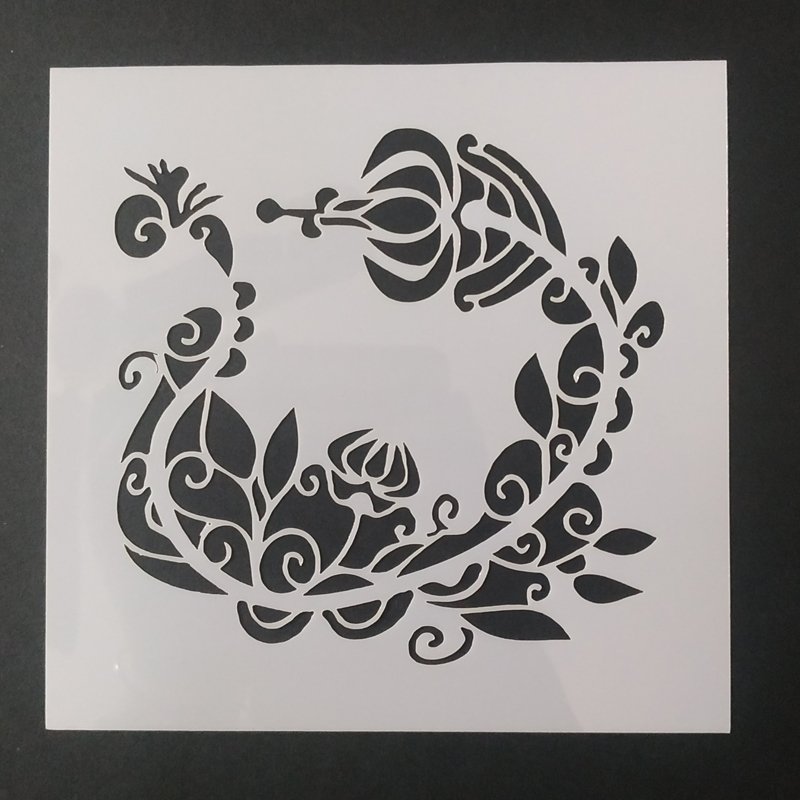 A stencil is a piece of paper, plastic, or metal which has a design cut out of it. You place the stencil on a surface and paint it so that paint goes through the holes and leaves a design on the surface. SIZE-5*5 INCHES WEIGHT-10 grm