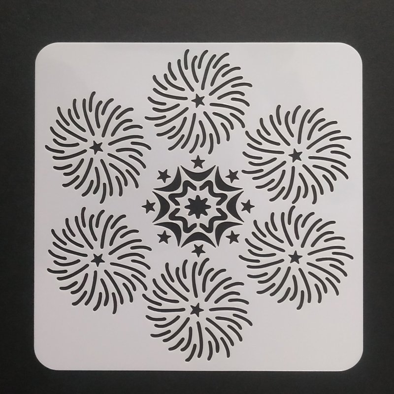 A stencil is a piece of paper, plastic, or metal which has a design cut out of it. You place the stencil on a surface and paint it so that paint goes through the holes and leaves a design on the surface. SIZE-5*5 INCHES WEIGHT-10 grm
