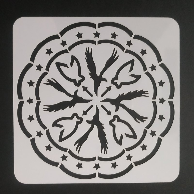 A stencil is a piece of paper, plastic, or metal which has a design cut out of it. You place the stencil on a surface and paint it so that paint goes through the holes and leaves a design on the surface. SIZE-5*5 INCHES WEIGHT-10 grm