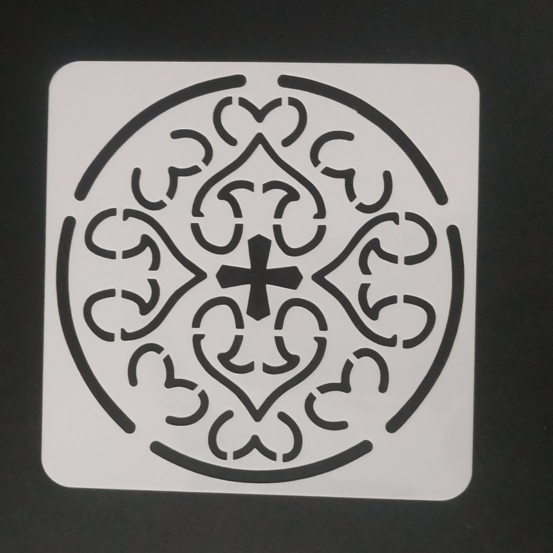 A stencil is a piece of paper, plastic, or metal which has a design cut out of it. You place the stencil on a surface and paint it so that paint goes through the holes and leaves a design on the surface. SIZE-5*5 INCHES WEIGHT-10 grm