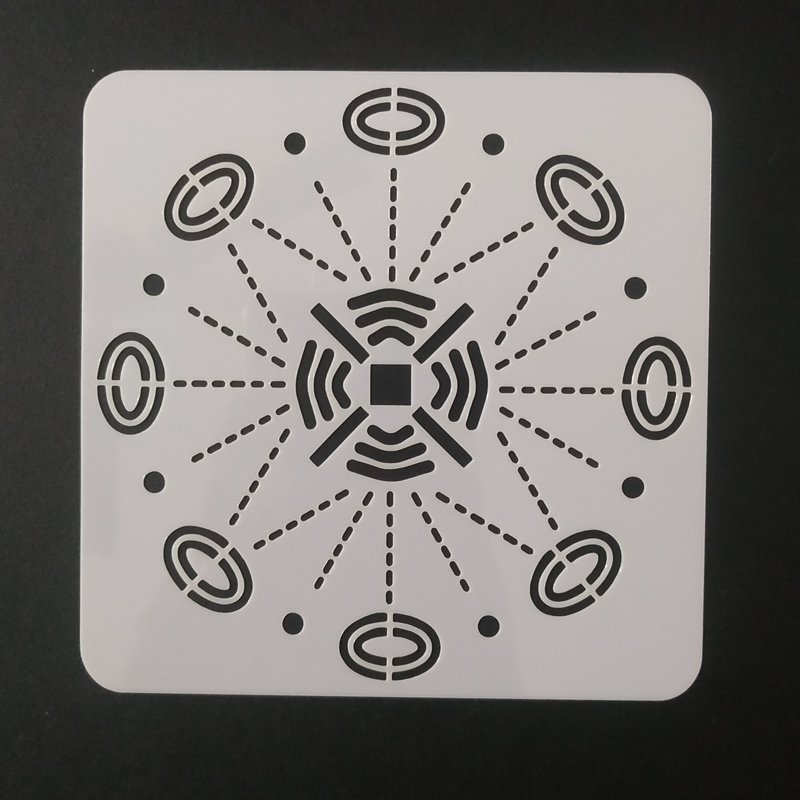 A stencil is a piece of paper, plastic, or metal which has a design cut out of it. You place the stencil on a surface and paint it so that paint goes through the holes and leaves a design on the surface. SIZE-5*5 INCHES WEIGHT-10 grm