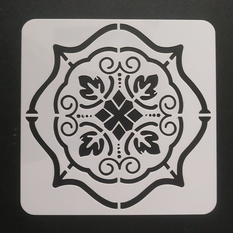 A stencil is a piece of paper, plastic, or metal which has a design cut out of it. You place the stencil on a surface and paint it so that paint goes through the holes and leaves a design on the surface. SIZE-5*5 INCHES WEIGHT-10 grm