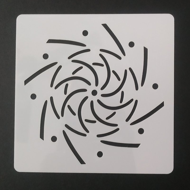 A stencil is a piece of paper, plastic, or metal which has a design cut out of it. You place the stencil on a surface and paint it so that paint goes through the holes and leaves a design on the surface. SIZE-5*5 INCHES WEIGHT-10 grm