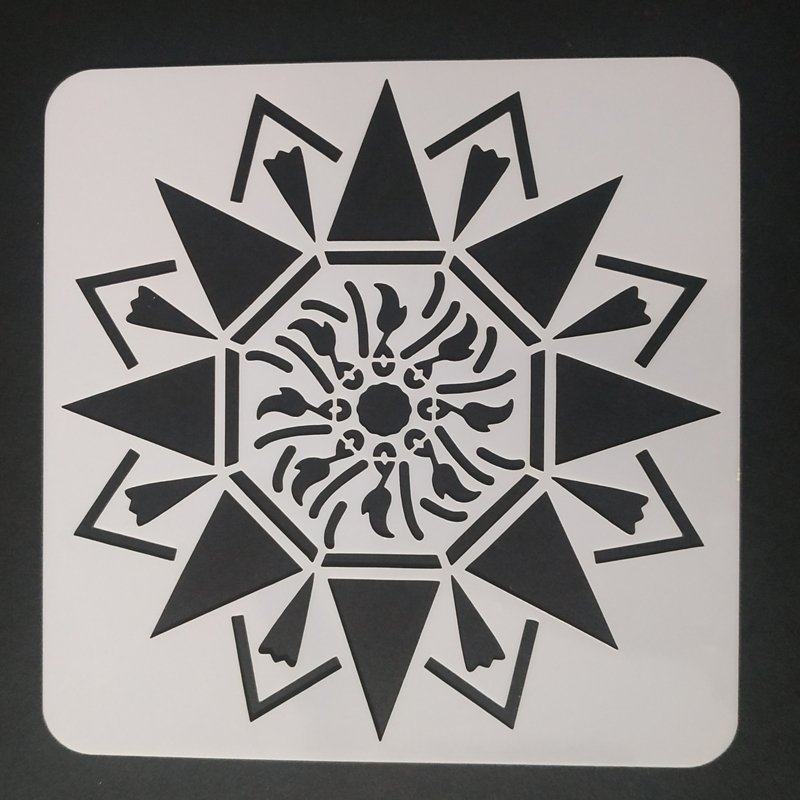 A stencil is a piece of paper, plastic, or metal which has a design cut out of it. You place the stencil on a surface and paint it so that paint goes through the holes and leaves a design on the surface. SIZE-5*5 INCHES WEIGHT-10 grm