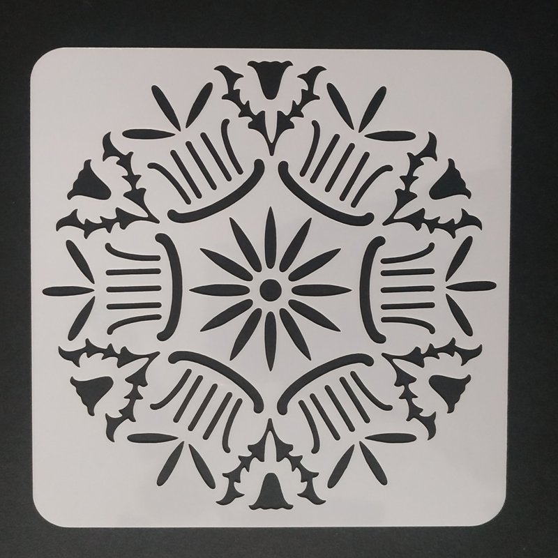 A stencil is a piece of paper, plastic, or metal which has a design cut out of it. You place the stencil on a surface and paint it so that paint goes through the holes and leaves a design on the surface. SIZE-5*5 INCHES WEIGHT-10 grm